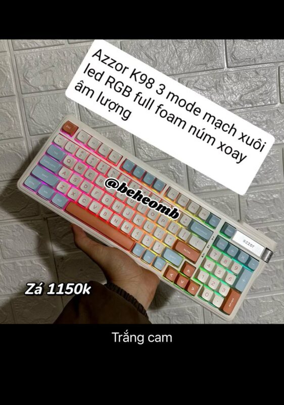 Bàn phím Azzor k98 mode mạch xuôi led RGB full foam núm xoay âm lượng