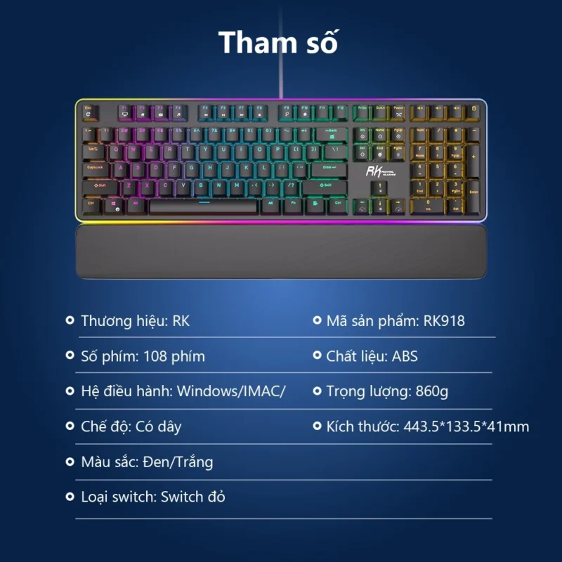 Bàn Phím Cơ Royal Kludge RK918 RGB ( LED RGB,LED Viền RGB,Blue/Red Switch )